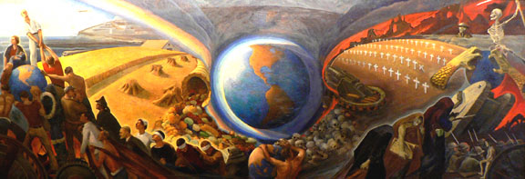 "Peace or War" mural was complete. At 5.5 by 13 feet in size, it